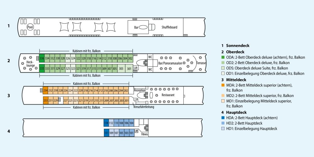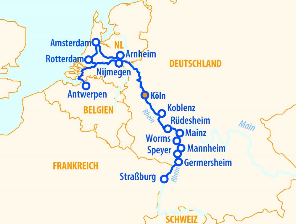 Flusskreuzfahrt mit 14 Nächten an Bord in der gebuchten Kategorie