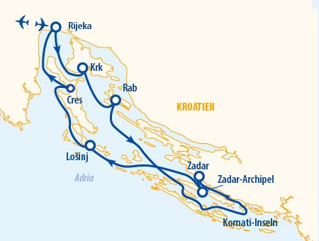 Begleiten Sie uns auf einer Entdeckungsreise zu den zauberhaften Inseln Norddalmatiens und der Kvarner Bucht. Nachdem wir unser komfortables Schiff erkundet haben, erkunden wir während unserer einwöchigen Küstenkreuzfahrt sieben der schönsten Inseln Kroatiens. Vom Sonnendeck aus genießen wir die türkisblaue Adria in Küstennähe und entdecken täglich neue, traumhafte Inselwelten.