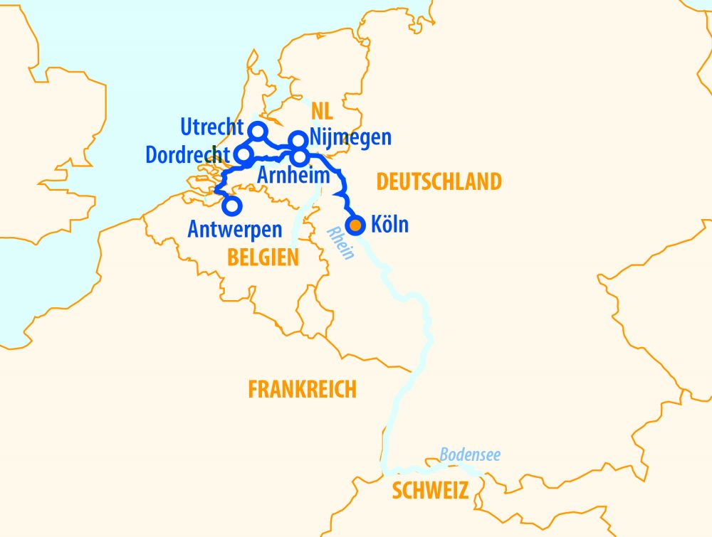 Festlich geschmückte Altstädte, romantische Winterlandschaften und besinnliche Momente an Bord begleiten uns auf dieser besonderen Weihnachtskreuzfahrt durch die Niederlande und Belgien. Während draußen der Lichterglanz vorbeizieht, genießen wir die Weihnachtsfeiertage in stimmungsvoller Atmosphäre.