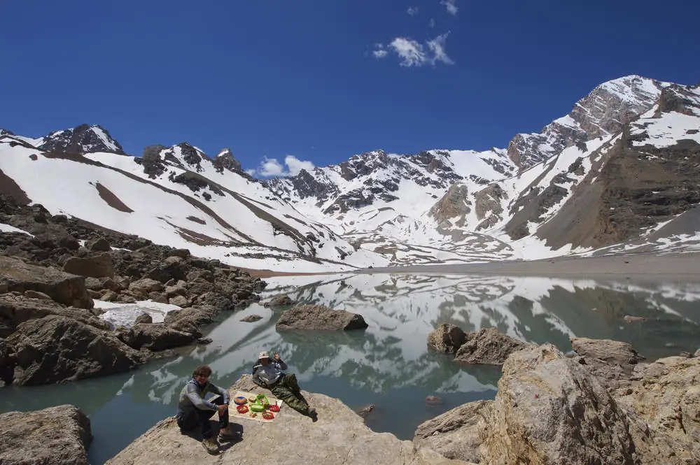 Und noch ein grandioser See: Der Mutnoe-See ist von dutzenden Vier- und Fünftausendern umgeben, Gletscherwände wechseln sich mit spektakulären Felsgipfeln ab. Nach dem Picknick am Seeufer wandern wir zu unserem Camp zurück. Danach Transfer nach Khujand und Hotelübernachtung. GZ 6 Std., +850 m, -950 m. 230 km. (F, M, A)