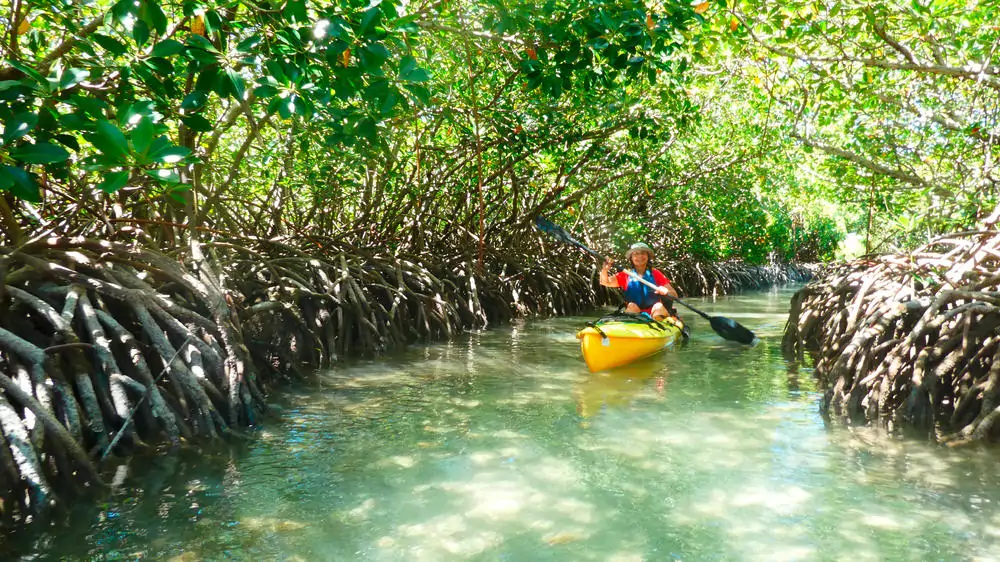 Lagunen? Mangroven? Und das alles in leuchtend türkisblauem Wasser? Heute unternehmen wir eine halbtägige Kajaktour auf der fast vollständig von Korallenbänken umgebenen Insel Île d´Ambre. Unterwegs steuern wir eine der zahlreichen Inseln an. Am goldenen Sandstrand wiegen sich die Palmen im Wind. Baden, schnorcheln? Wir haben viele Möglichkeiten. 20 km. (F, A)