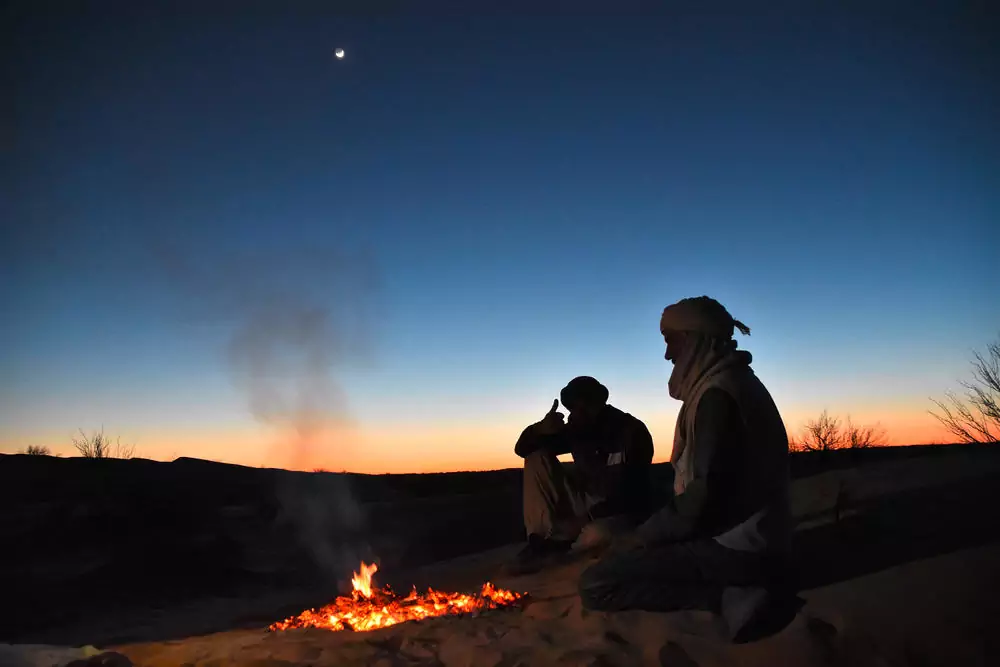 Auf dem Rücken der gemütlich wandernden Wüstenschiffe oder zu Fuß erleben wir die Schönheit der Wüste hautnah. Wir durchqueren den Grand Erg Oriental, das größte zusammenhängende Sandmeer der Sahara auf Pfaden, die nur unsere Kamelführer erkennen können. Beim Blick über die großen und kleinen Dünen wird uns die imposante Weite erst so richtig bewusst. Der Wind zeichnet Muster in den Sand, wir entdecken Tierspuren und genießen feines, frischgebackenes Brot und andere Köstlichkeiten. Abends machen wir es uns am Lagerfeuer gemütlich. Am 6. Tag werden die großen Dünen langsam flacher, immer wieder sind nun Büsche zu sehen, bis wir uns schließlich auf einer weiten Ebene befinden. Ein letztes Mal bewundern wir den funkelnden Sternenhimmel der Sahara über unserem Zeltlager. Tägliche GZ 5-6 Std. (2 x F, 2 x M, 2 x A)