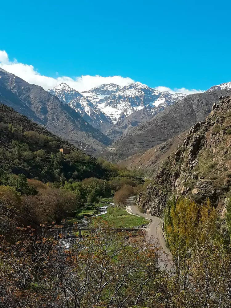 Wir tauschen das pulsierende Marrakesch gegen die Ruhe des Hohen Atlas und erreichen die Heimat der Berber. Beim traditionellen Minztee lauschen wir ihren Geschichten und lernen, wie man das leckere Nationalgericht, die Tajine, zubereitet. Dann genießen wir unser Mittagessen mit Blick auf Marokkos höchsten Berg, den Djebel Toubkal. Am Nachmittag setzen wir die Fahrt zu unserer Herberge in Ouirgane fort. Hotelübernachtung. 100 km. (F, M, A)