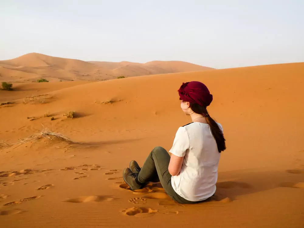 Weiterfahrt und Besuch der Bibliothek von Tamegroute. In Mhamid steigen wir in Jeeps um und fahren in Richtung der höchsten Dünen der Region, wo wir nachmittags eine leichte Wanderung im flachen Wüstenterrain unternehmen (optional kann auch ein Reitkamel gemietet werden). GZ ca. 2 Std. Übernachtung im komfortablen Wüstencamp. 160 km. (F, M, A)