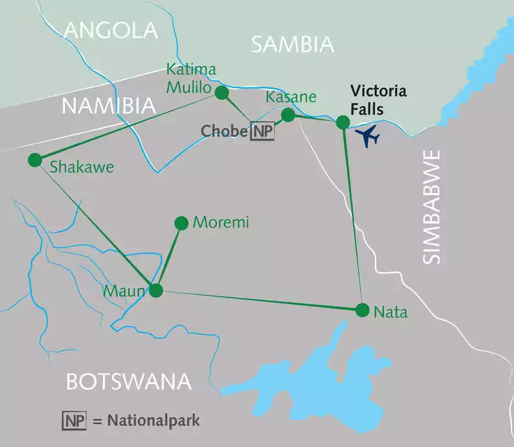 Du suchst mehr als eine einfache Rundreise? Du möchtest den lebensfrohen Einheimischen begegnen, wilde Tiere beobachten und spektakuläre Landschaften genießen? Dann bist du hier genau richtig! Wir kombinieren die ultimativen Safari-Erlebnisse Botswanas mit faszinierenden Aktivitäten in Simbabwe. In unseren Unterkünften kommen wir am Lagerfeuer dem herrlichen Sternenhimmel Afrikas ganz nah. Victoria Falls, Okavango-Delta und Chobe-Nationalpark ... nur einige der Highlights, die du hautnah erlebst. Komm mit auf diese unvergessliche Reise!
