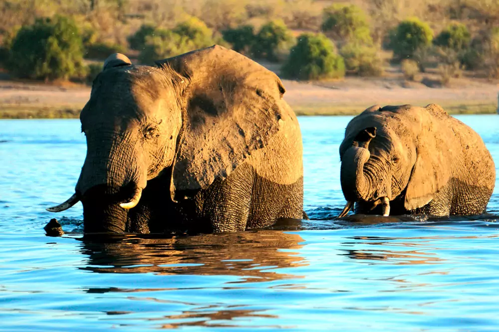 Durch den östlichen Teil der Sambesi-Region passieren wir die Grenze zu Botswana. Unterwegs haben wir Zeit, um ein wenig in das Leben der lokalen Bevölkerung einzutauchen. Angekommen in unserer Lodge, können wir den Nachmittag im kühlen Nass des Pools oder gemütlich auf der einladenden Terrasse ausklingen lassen. Der krönende Abschluss der Reise ist unsere Wildbeobachtung vom Wasser aus. Mit dem Boot geht es auf dem Chobe River in den gleichnamigen Nationalpark. Hier freuen wir uns auf Krokodile, trinkende Elefanten, Büffel, Nilpferde und Giraffen. Auch Vogelfreunde kommen voll auf ihre Kosten: Nilgänse, Afrikanische Fischadler und viele mehr erwarten uns. Vielleicht können wir sogar einige der Tiere bei der Flussquerung beobachten – einfach beeindruckend. Kamera nicht vergessen! Tierbegegnungen sind im Chobe-Nationalpark quasi unvermeidbar – Gänsehaut-Feeling pur! 2 Lodgeübernachtungen in Kasane. 260 km. (2 x F, 2 x A)