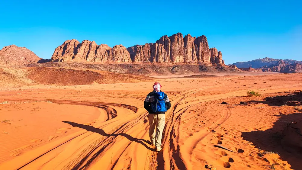 Weiterfahrt in das Wadi Rum: "Weitläufig, einsam und göttlich", so beschrieb Lawrence von Arabien das Wadi Rum, die größte und prächtigste Wüstenlandschaft Jordaniens. Wir genießen anderthalb Tage die unglaubliche Stille dieser Wüste und durchwandern beeindruckende Sand- und Felsformationen. 2 Übernachtungen im Beduinencamp im Wadi Rum. GZ ca. 2 und 3 Stunden. 120 km. (2 x F, 2 x M, 2 x A)