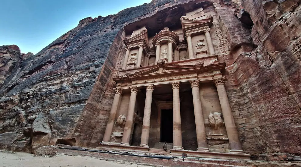 Das geheimnisvolle Händlervolk der Nabatäer meißelte seine Hauptstadt in den rosaroten Sandstein inmitten der Wüste Edom. Durch die enge Schlucht des Siqs gelangen wir in das Herz der Stadt und stehen vor dem "Schatzhaus", dem berühmtesten Baudenkmal Petras. Hotelübernachtung in Petra. (F, A)