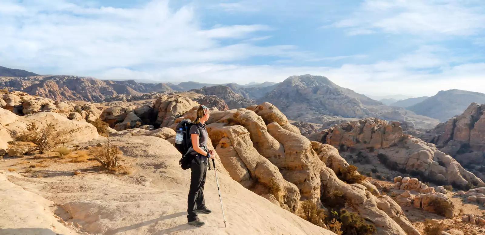 Geheimtipp-Trekking mit orientalischem Reiz. Wir wandern durch antike Welten, durch Wüsten und Wadis. Das Volk der Nabatäer meißelte hier das UNESCO-Welterbe Petra aus dem Stein. Von hier steigen wir ins Wadi Rum hinein, rosarote Tafelberge säumen unseren Pfad. Dann ruft der Gipfel, der Jebel Um ad-Dhami (1.854 m), der uns Jordaniens Schönheit von ganz oben zeigt: goldene Dünen und ein Felsenmeer, so weit das Auge reicht. Wir erwandern Jordaniens schönste Naturlandschaften und begegnen seiner bewegten Vergangenheit bis hin zu den Stränden am Roten Meer. Auf in ein Wanderparadies aus 1.001er Nacht!