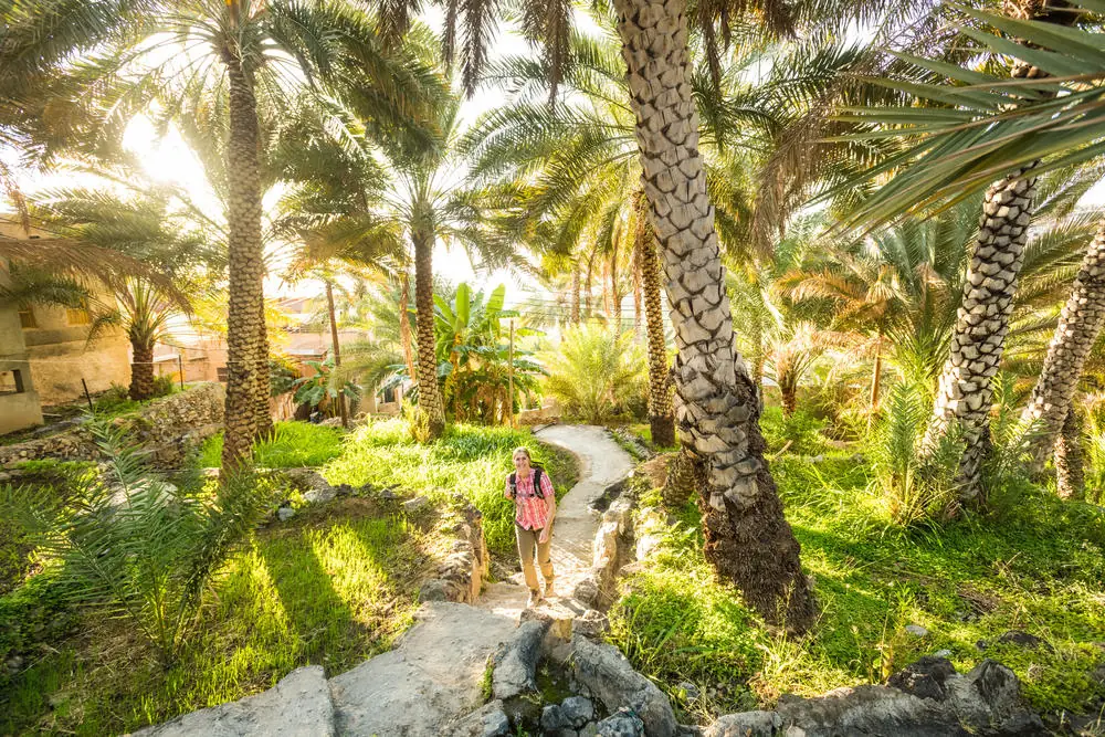 In der einstigen Hauptstadt des Landes tauchen wir am Vormittag in den Zauber der Souks ein. Die hier angebotenen Datteln gelten als die besten des Landes. Über dem alten Teil, dem East Souk schwebt beständig der Duft von Gewürzen, Weihrauch und Rosenöl. Im Anschluss an den Bummel durch die bunten Gassen gehen wir zum Nizwa Fort mit seinem mächtigen Wehrturm und besichtigen die Festung und das Museum. Eine kurze Fahrt bringt uns danach in die Bergoase Misfat Al Abriyeen. Bei einem Spaziergang durch die liebevoll gepflegten Gärten und das mittelalterliche Dorf entdecken wir die Raffinessen der für Oman typischen Bewässerungstechnik Afalaj und der hiesigen Landwirtschaft. GZ ca. 2 Std., ±100 m. Gasthausübernachtung in Misfat Al Abriyeen. 55 km. (F, A)