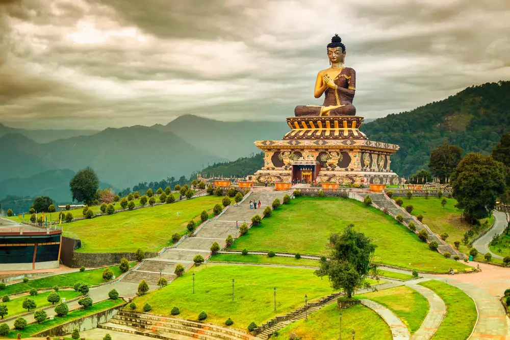 Früh aufstehen heißt es am 5. Tag, denn wir wollen der Morgen-Meditation den Mönchen im nahen Kloster beiwohnen. Später fahren wir nach Sikkim. Durch ein spektakuläres Flusstal geht die Fahrt nach Gayzing. Hier oder alternativ in Pelling übernachten wir mit direktem Blick auf den dritthöchsten Berg der Welt – den Kanchenjunga (8.586 m). Am 6. Tag wandern wir morgens direkt los, besuchen ein kleines Dorfkloster und erreichen nach einer GZ von 2-3 Stunden die Ruinen von Rabdantse, der einstigen Hauptstadt Sikkims. Am Nachmittag statten wir Pemayangtse, dem wichtigsten Kloster der Region einen Besuch ab. Ein Abstecher führt uns zum Kloster Sangacholing und der daneben entstehenden riesigen Statue der Chengrezig. Nach so vielen buddhistischen Höhepunkte geht es abends phänomenal weiter: Wir übernachten bei Gastfamilien und lernen das ländliche Leben in Sikkim kennen. Gemeinsam kochen wir das Nationalgericht. Jeweils 1 Hotelübernachtung in Gayzing oder Pelling und 1 Übernachtung bei Einheimischen bei Kewazing. 90 km an Tag 5 und 40 km an Tag 6. (2 x F, 1 x A )