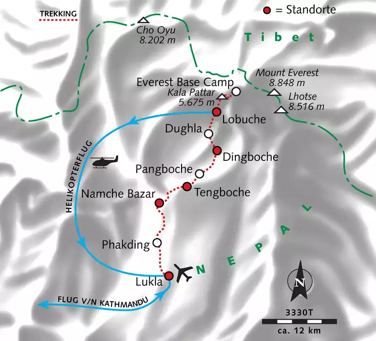 Visagebühren sind im Reisepreis nicht enthalten. *Schlafsackmiete vor Ort für EUR 70 möglich. Bei Buchung bitte direkt mit angeben. Solltest du entgegen der Ausschreibung von Kathmandu nach Lukla (und wieder zurück nach Kathmandu fliegen, erfolgt die erste Übernachtung in Kathmandu und nicht in Dhulikhel.