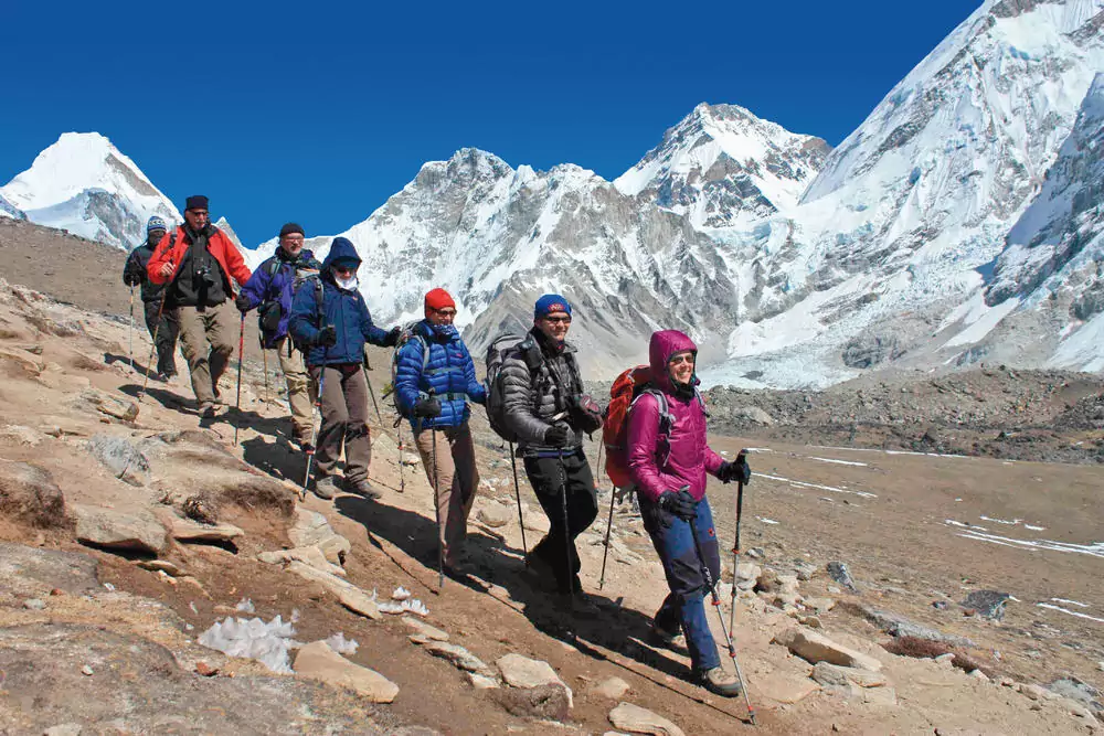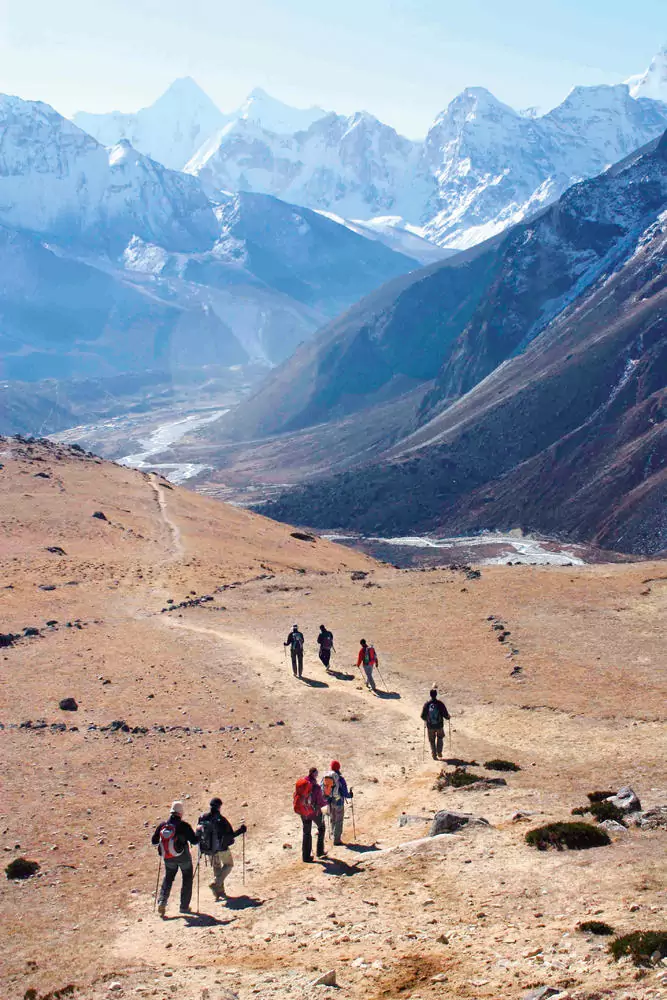 Eine Herausforderung selbst für erfahrene Bergwanderer: der Trek zum berühmtesten Basislager der Welt. Ein grandioses Hochgebirgspanorama, gekrönt von den Eiskegeln der Achttausender, lässt hier den Weg zum Ziel werden. An Klöstern und Sherpa-Dörfern vorbei wandern wir zum Fuß des höchsten Bergs der Erde. Ama Dablam, Lhotse, Nuptse und Everest sind dabei unsere ständigen Gefährten. Von dem Aussichtsgipfel des Kala Patthar (5.620 m) genießen wir wohl das spektakulärste Bergpanorama der Welt: Der Mount Everest ist hier zum Greifen nahe!