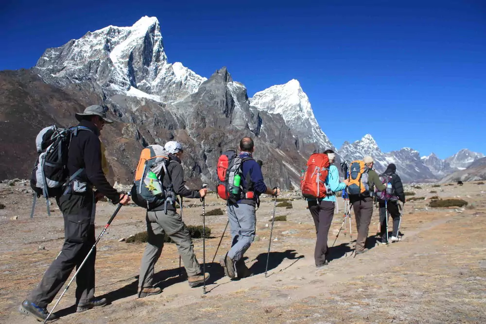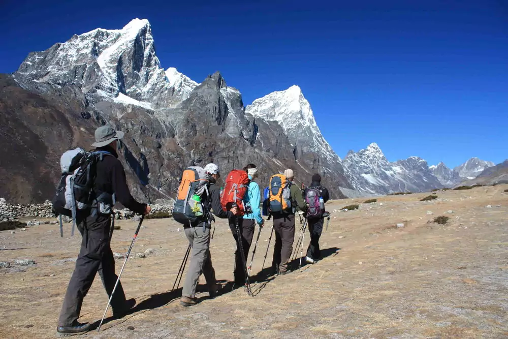 Wir steigen zu einem Chörten oberhalb von Dingboche auf und wandern durch bizarre, durch Gletscher geformte Hochgebirgslandschaft nach Lobuche. GZ ca. 6 Std., +600 m. (F, A)