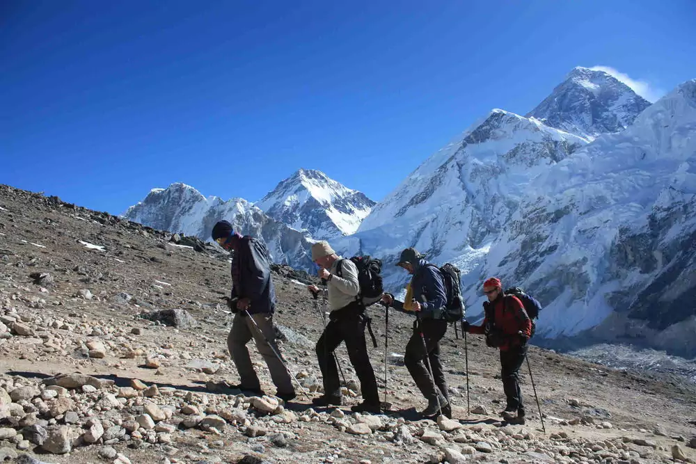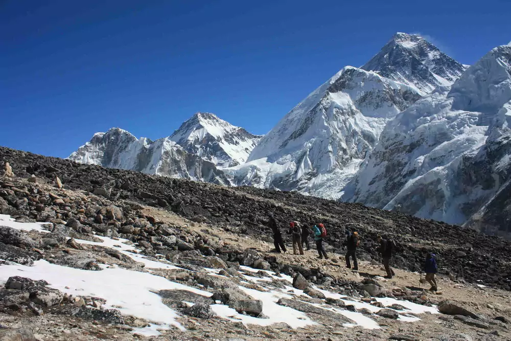 Bei unserer heutigen Wanderung geht es zum Kala Patthar (5.620 m). GZ 5-6 Std., +500 m, -650 m. Umgeben von Sieben- und Achttausendern wirkt diese braune Kuppe etwas unbedeutend, doch das Panorama von seinem Gipfel zählt zu den schönsten der Welt: Mount Everest (8.848 m), Lhotse (8.516 m), Nuptse (7.861 m) und der Khumbu-Eisfall bilden das wohl begehrteste Fotomotiv im gesamten Himalaja. Danach Abstieg nach Lobuche und Übernachtung. (F, A)