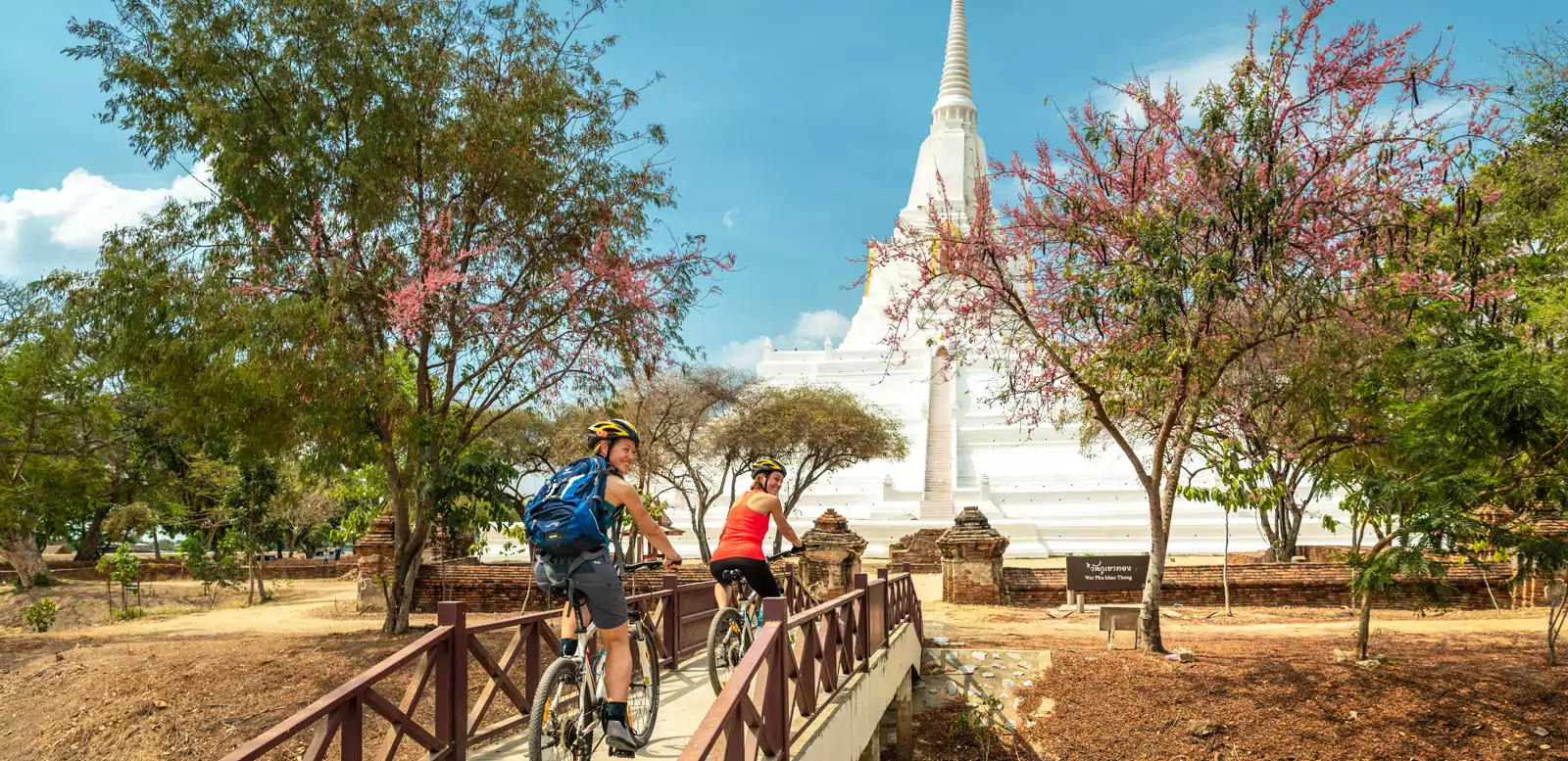Unsere heutige Radtour führt uns auf Thepho Island durch Reisfelder und am Fluss Chao Phraya entlang. Am Nachmittag bringt uns der Bus zum Tempel Wat Pa Mok aus der Ayutthaya-Zeit mit einer etwa 22,5 m langen, liegenden Buddha-Statue. Weiter geht es in die historische Metropole Ayutthaya, die einst eine der größten und prachtvollsten Städte des Orients war. Sie wurde 1767 völlig zerstört, doch die eindrucksvollen Ruinen zeugen noch immer von einstigem Glanz. Hotelübernachtung in Ayutthaya. (F, A)