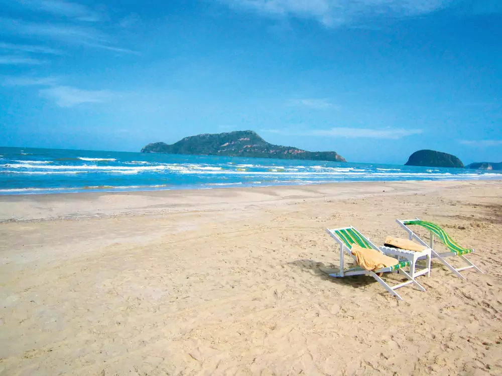 Der kilometerlange Sandstrand inmitten einer malerischen Meeresbucht direkt vor dem Hotel lädt zum Relaxen ein. Wer möchte, nimmt an der Radtour (ca. 40 km) entlang der Küste von Pranburi teil. (F)
