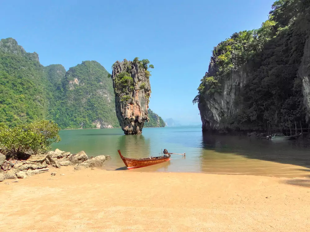 Per Boot entdecken wir die Phang-Nga-Bucht, die im Jahre 1981 zum Marine-Nationalpark erklärt wurde. Ein echtes Wunder der Natur! Entlang der Küstenlinie der Bucht finden sich Mangrovenwälder. Bizarre Karstklippen, teils von Kletterpflanzen und Büschen überzogen, ragen in den unterschiedlichsten Formen aus dem Meer. Oft findet man prähistorische Felszeichnungen. Wir besuchen die berühmte kleine Insel Koh Tapu, besser bekannt als "James Bond Island", und das im seichten Wasser der Phang-Nga-Bucht komplett auf Stelzen errichtete muslimische Dorf Panjee. (F, A)