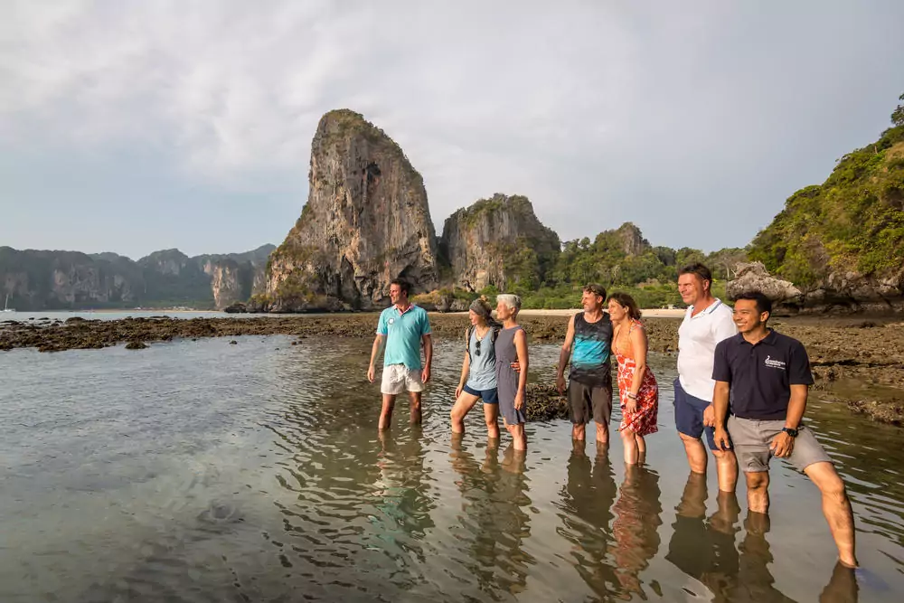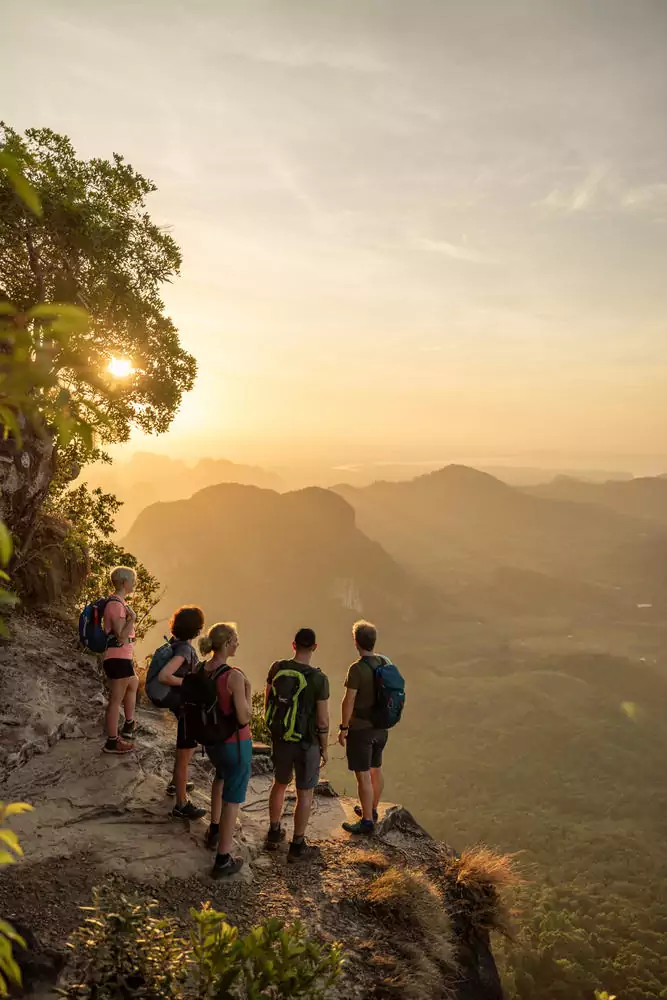 Am Morgen geht es per Schnellfähre zurück zum Pak Bara-Pier. Von dort fahren wir nach Krabi und besuchen unterwegs den Tigertempel. Hier können wir optional die 1.237 oft steilen Stufen zu einem über dem Tempel gelegen Schrein aufsteigen, der uns wunderschöne Ausblicke über die Krabi-Ebene und die nahen Karstklippen eröffnet. GZ ca. 2 Std., ±250 m. Danach geht es weiter zum traumhaften Sandstrand vor unserem Hotel. Dort können wir die Seele baumeln lassen. Am nächsten Morgen erklimmen wir den Gipfel des Khao Ngorn Nak, auch Schlangenkopfberg genannt, zu Fuß. Der teilweise recht steile Aufstieg durch dichten Küstenurwald belohnt uns mit atemberaubenden Panoramen über die umliegende Karstlandschaft und die vorgelagerte Inselwelt des Hong-Archipels. GZ 4-5 Std., +450 m, -550 m. 2 Hotelübernachtungen bei Krabi. 260 km an Tag 16. (2 x F, 1 x M)