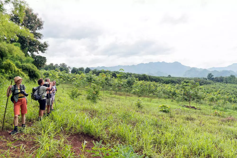 Heute fahren wir entlang des Kok-Flusses in ein Karen-Dorf und weiter bis zum Eingang des Lam Nam Kok-Nationalparks, wo wir eine Wanderung unternehmen. Sie führt uns auf grünen Pfaden zu Dörfern der hier ansässigen Stämme wie den Akha und Lahu. Unterwegs genießen wir die grandiosen Aussichten auf das umliegende Bergland. Durch Wald und Teeplantagen erreichen wir am Ende eine heiße Quelle, in der wir uns zum Abschluss entspannen können. GZ ca. 5 Std., ±540m. 20 km (F, M)