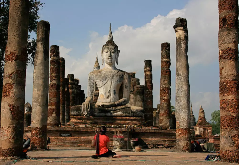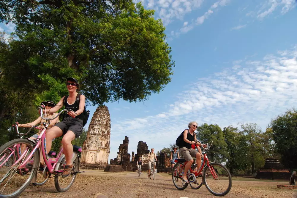 Weiter geht es heute nach Sukhothai. Die 1237 gegründete Stadt gilt als Wiege siamesischer Kultur und war erste Hauptstadt des Königreichs. Nachmittags dann ein Geheimtipp – eine kurze Wanderung führt uns zu den nahegelegenen Ruinen der Tempelanlage Wat Chang Lom mit ihrem von steinernen Elefanten getragenen, glockenförmigen Chedi. GZ ca. 2 Std. Am Folgetag unternehmen wir eine ganztägige Radtour durch die beeindruckenden Ruinen des historischen Parks von Sukhothai (UNESCO-Weltkulturerbe) und weiter zu ausgewählten Tempeln in der näheren Umgebung (ca. 2 Std. optionale Verlängerung um weitere 2 Std. möglich, lokale Räder). 2 Hotelübernachtungen in Sukhothai. 250 km an Tag 7. (2 x F)