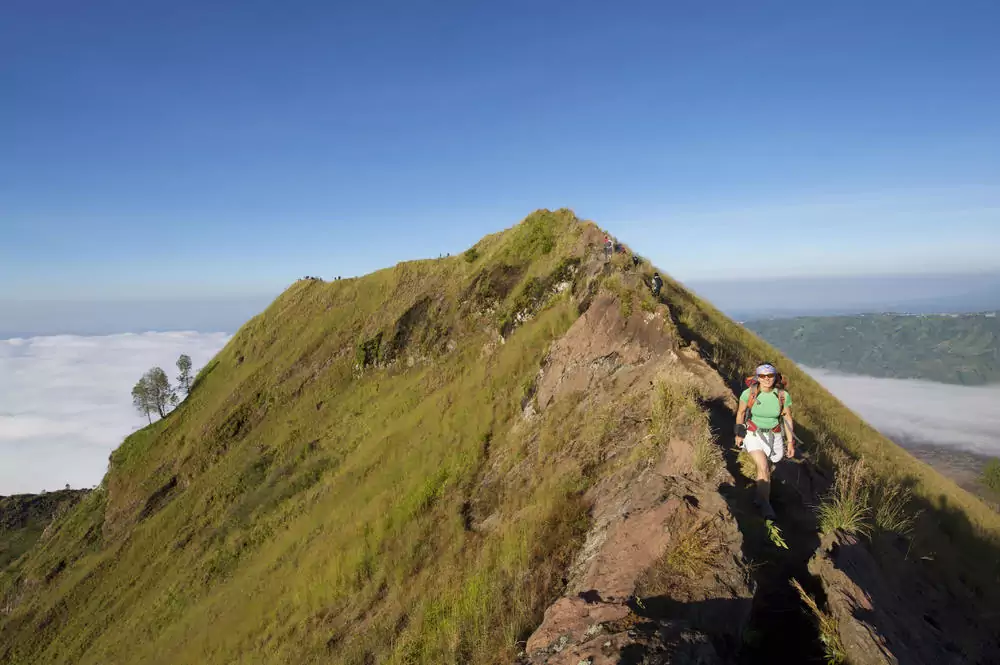 Sehr früh heißt es für uns raus aus den Federn und rein in eines unserer absoluten Wander-Highlights der Tour. Ausgestattet mit einer Stirnlampe machen wir uns in der mystischen Dunkelheit auf den Weg, um einen der atemberaubendsten Sonnenaufgänge Indonesiens zu sehen. Noch einmal tief durchatmen, einen Schluck trinken und dann erreichen wir gegen 6 Uhr morgens den Kraterrand des Mount Batur mit einem Rundumblick, der uns den Atem stocken lässt. GZ ca. 5 Std., ±500 m. Wir suchen uns ein schönes Plätzchen um die aufgehende Sonne und das Farbenmeer rund um uns herum zu zelebrieren. Beeindruckt steigen wir nach Sonnenaufgang wieder ab und entspannen in den heißen Quellen mit Blick auf den von uns erklommenen Vulkan. Zurück im Hotel haben wir noch Zeit zur freien Verfügung, um den kleinen Ort Ubud zu erkunden und unser Verhandlungsgeschick auf dem großen Markt unter Beweis zu stellen. 85 km. (F, M)