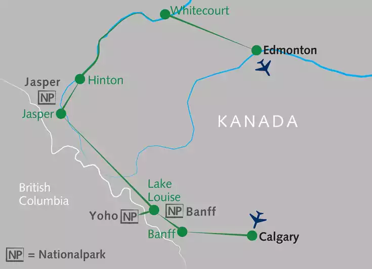 Du suchst ein spannendes und aktives Abenteuer in atemberaubender Natur? Dann sind die schönsten Nationalparks der Rocky Mountains genau das Richtige für dich. Hier entdeckst du eine der landschaftlich großartigsten Regionen Westkanadas: eindrucksvoll und naturnah – zu Fuß oder vom Wasser aus. Hier bieten sich hervorragende Chancen, die reiche Tierwelt hautnah zu erleben. Freu dich auf türkisblaue Bergseen, reißende Wasserfälle, schneebedeckte Bergmassive und eisige Gletscher. Schnür deine Wanderschuhe und ab in die Berge. Welcome to Canada!