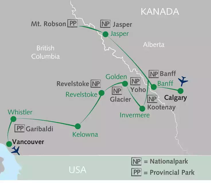- Icefields Parkway, Okanagan Valley, Whistler und Vancouver