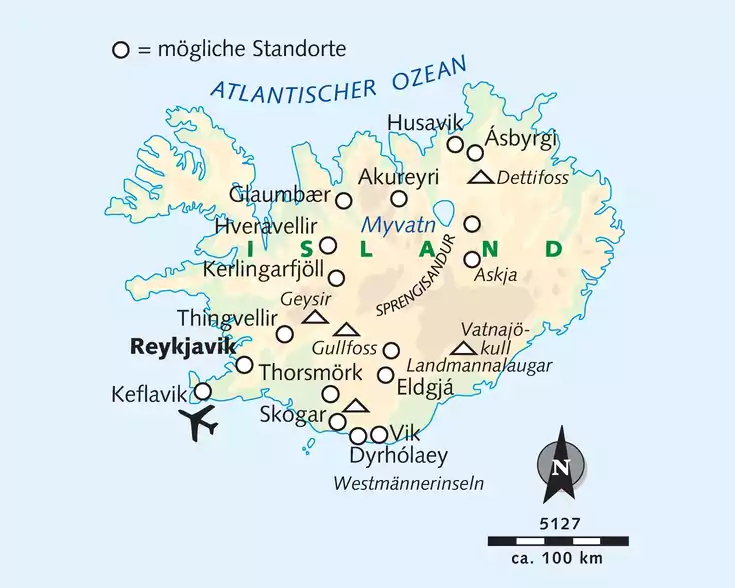 Mit dieser Tour bieten wir eine Islandreise an, so wie wir sie ähnlich bereits 1973 angeboten haben. Denn die Wikinger-Geschichte hat mit Zeltreisen nach Island ihren Lauf genommen, und beliebt war eine "Safari" (so hießen die Reisen damals) durchs Hochland. Dabei soll natürlich nicht die Historie im Vordergrund stehen, sondern dieses einmalige Reiseland in der Arktis: Island. Es gibt keine tägliche Reiseroute, die wir festgelegt haben, aber wir befolgen eine alte isländische Regel: Ist das Wetter im Süden schlecht, dann ist es im Norden gut – also geht es zuerst in den Norden. Wir haben keine festgelegten und organisierten Zeltcamps, das Wetter und die Stimmung der Gruppe bestimmen die Tagesetappe. Gemeinsam mit der Reiseleitung besprechen wir zu Beginn die geplante Route, jeder kann sich einbringen. Wir besuchen außergewöhnliche und beeindruckende Orte und gelangen mit unserem Allradfahrzeug in Regionen, die sonst nicht ohne weiteres zugänglich sind. Wir durchqueren Flüsse und befahren die alten Hochlandrouten auf denen nur Geländefahrzeuge erlaubt sind. Aber auch einige klassische Highlights der Vulkaninsel sind sicher einen Besuch wert. Wie wäre es mit einem Besuch Thingvellirs mit der Allmännerschlucht, den berühmten Geysir Strokkur und den mächtigen Wasserfall Gullfoss mit seinen zwei Fallstufen? Am Myvatn-See im Norden bestaunen wir Pseudokrater, die Dunkle Lavaburg „Dimmuborgir" und den Aschekrater „Hverfjall". Hier erleben wir auch das Vulkangebiet Krafla mit seinen Lavafeldern, Fumarolen und kochenden Schwefeltöpfen. Eine abenteuerliche Fahrt über Lavafelder und durch Flüsse führt zum Vulkankrater Askja. In Landmannalaugar mit den markanten bunten Bergen empfehlen wir nach dem Wanderprogramm ein herrliches Bad in den warmen Quellen. Ebenfalls einen Besuch wert ist die Feuerschlucht Eldgja und das Gletschertal Thorsmörk in der Nähe des bekannten Vulkans Eyjafjallajökull. Die Südküste Islands erwartet uns mit mehreren imposanten Wasserfällen, dem historisch sehr interessantem Heimatmuseum Skogar (fakultativ) und dem schwarzen Lavastrand am Kap Dyrholaey. Stress und Hektik werden zurückgelassen, es geht zurück zur Natur. All diese genannten Routen und Sehenswürdigkeiten dienen lediglich als Vorschlag und Anregung unsererseits, um die Vielfältigkeit Islands und die unzähligen Unternehmungsmöglichkeiten, die dieses einzigartige Land bietet, darzustellen.