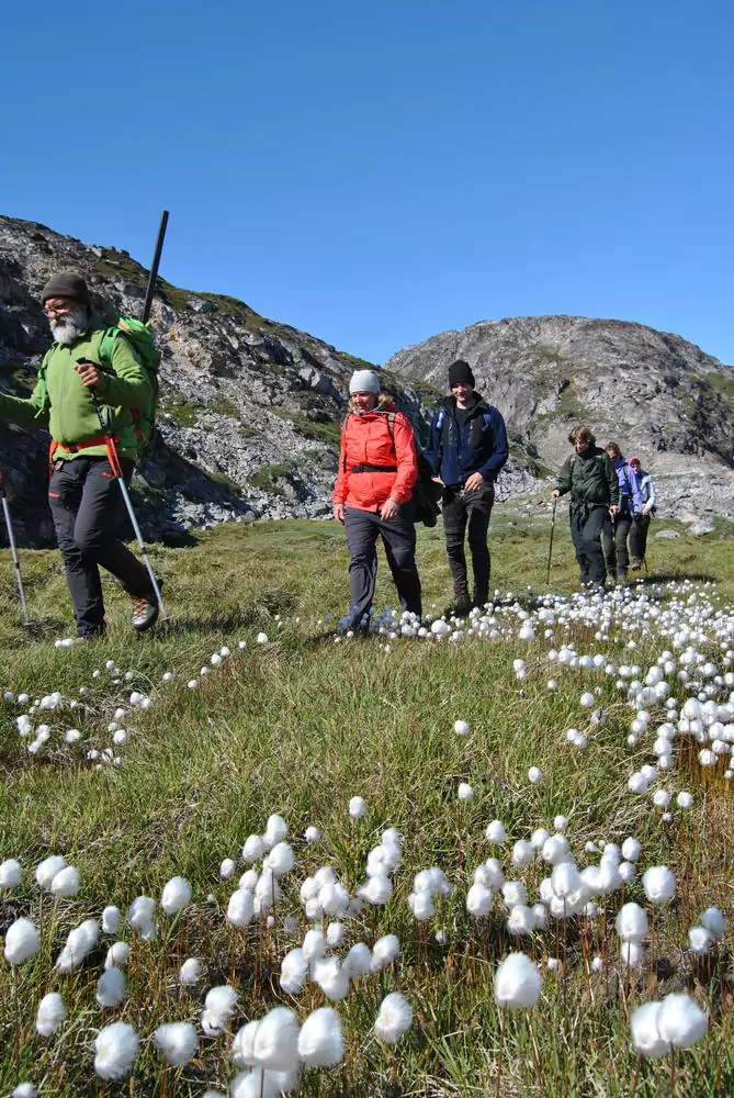 Heute gilt es, uns mit Tasiilaq, der „Hauptstadt“ Ostgrönlands, vertraut zu machen. Ohne Zweifel ist es übertrieben, bei der kleinen Inuitsiedlung mit kaum 2.000 Einwohnern von einer Stadt zu sprechen, und doch gibt es so viel zu entdecken: Wie lebt man eigentlich in einer grönländischen Siedlung? Wie funktioniert das Zusammenleben einer jahrhundertealten Kultur am Ende der Welt? Am Nachmittag schnüren wir die Wanderstiefel und erkunden auf unserer Einstiegswanderung die unmittelbare Umgebung von Tasiilaq. Einem kleinen Pfad folgend, durchwandern wir das Blumental und bestaunen die wider Erwarten vielfältige Blütenpracht des kurzen arktischen Sommers (GZ: 2 Std., +/- 100 m). Abends erfahren wir in gemütlicher Runde Genaueres zur wechselvollen Besiedlungsgeschichte Grönlands.