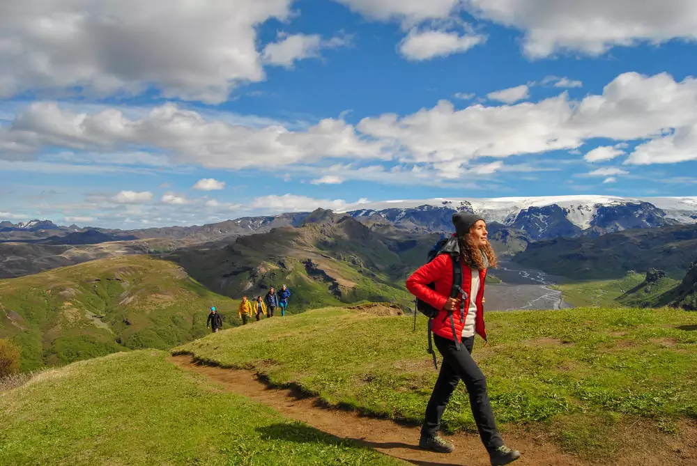 Unser Weg führt uns weiter ins Landesinnere in die Gletscheroase Thorsmörk. Ein grünes Wanderparadies, umrahmt von drei Gletschern, erwartet uns. Ein wahres Naturwunder, das uns das Gefühl gibt, als seien wir plötzlich in Tolkiens Auenland gelandet. Wir umwandern das Bergmassiv des Tindfjöll mit Ausblick auf die Gletscherzungen des Myrdalsjökull (GZ: 4 Std., +/- 300 m).