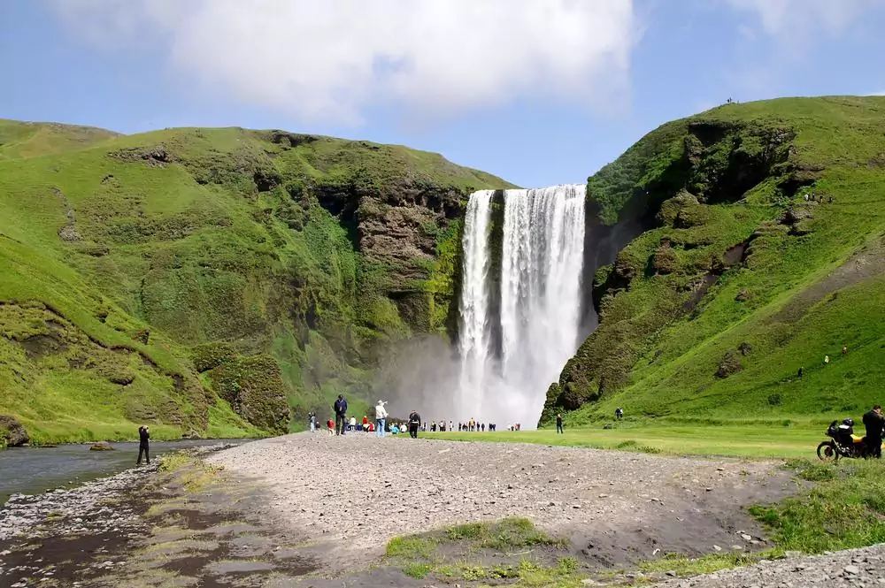 Entlang der Südküste erwarten uns Highlights satt. Den Wasserfall Seljalandsfoss können wir sprichwörtlich hintergehen. Am nicht weniger eindrucksvollen Wasserfall Skógafoss unternehmen wir eine kurze Wanderung auf dem Fimmvörðuháls-Pfad (GZ: 1 1/2 Std., +/- 50 m). Im verträumten Fischerdorf Vík an der Südspitze Islands erkunden wir den schwarzen Lavastrand von Reynisdrangar. Auf dem Rückweg erleben wir die imposante Eis-Zunge des Gletschers Sólheimajökull.
