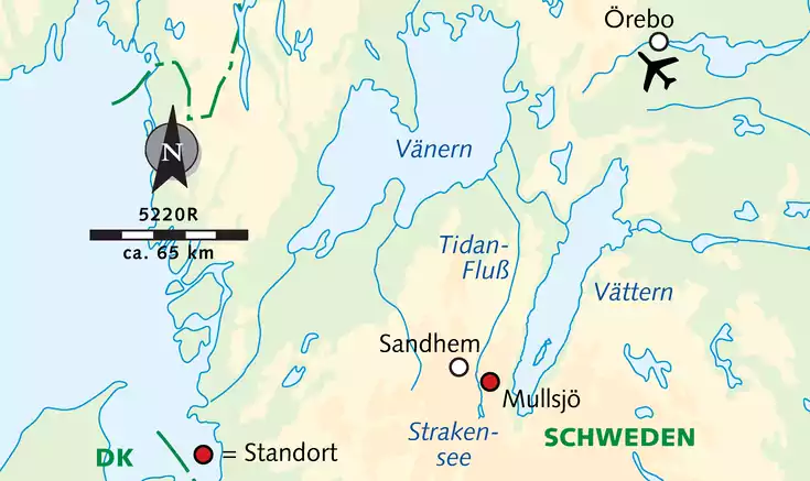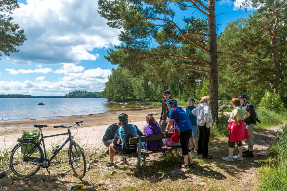 Auf abgeschiedenen Wegen radeln wir gen Norden zum Gravjön-See. Anschließend queren wir den Tidan-Fluss und erreichen die beschauliche Ortschaft Sandhem, wo wir eine Rast am Sandhemssjön-See einlegen. Ein Sprung in den See lohnt sich. Gemütlich radeln wir entlang des Flusses zurück zum Hotel.