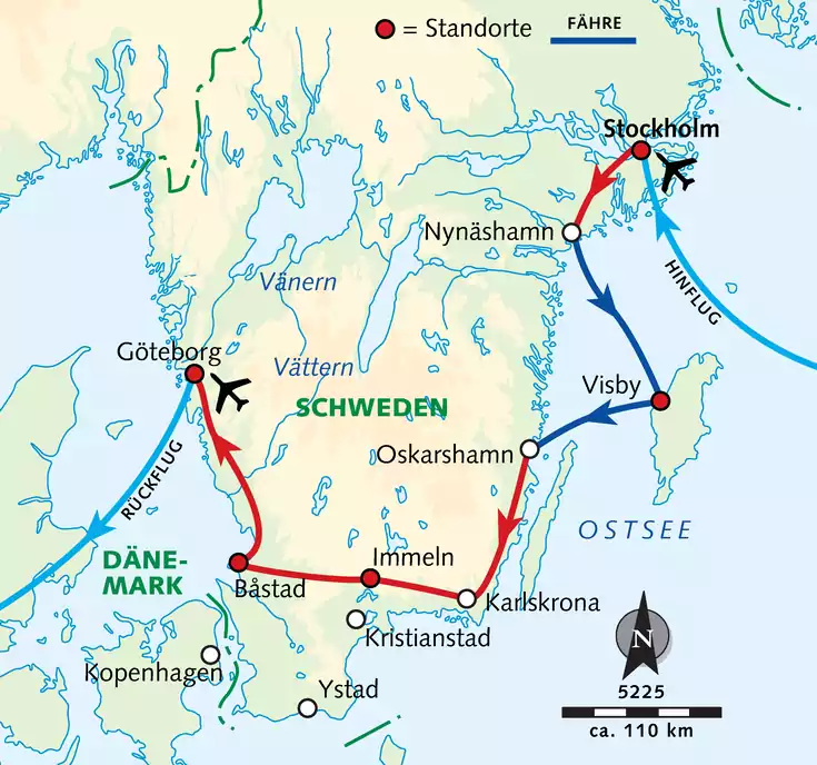 Schwedens Süden – landschaftliche Schönheit und historische Monumente verschmelzen ineinander: mittelalterliche Bauwerke und Landkirchen, Festungen und Schlösser. Ein Höhepunkt der Reise ist der Besuch Gotlands, hier stehen – einmalig in der Welt – 92 mittelalterliche Kirchen! Stockholm rühmt sich zu Recht, das Venedig Skandinaviens zu sein, und ein Besuch Göteborgs an der Westküste Schwedens bringt uns dem maritimen Charakter Schwedens näher. Komm mit, denn gemeinsam entdecken wir die Schönheiten Südschwedens!