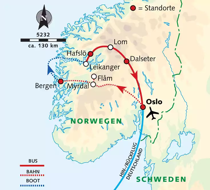 Inmitten der grandiosen Landschaftsvielfalt Südnorwegens liegen neben malerischen Örtchen die Hansestadt Bergen, die mit alten Holzhäusern und gemütlicher Hafenatmosphäre aufwartet, und natürlich die lebendige Hauptstadt Oslo. Spektakuläre Wandergebiete gibt es überall – wir erkunden die aussichtsreiche Fjordlandschaft am Sognefjord und die "friedliche Wildnis" im ursprünglichen Tal von Espedalen. Ein weiteres Highlight: die Fahrt mit der berühmten Bergen- und Flåmbahn. Eine Reise voller Abwechslung!