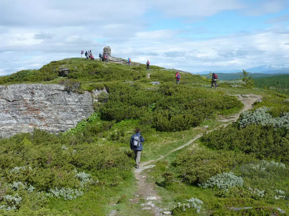 Wir starten unsere Wanderung vom Hotel aus, genießen traumhafte Aussichten in alle Himmelsrichtungen: Im Norden die Gipfel der Rondane, vor uns das wilde Venabygdsfjellet und westlich die vergletscherten Gipfel des Jotunheimen. Zunächst erklimmen wir das Svartfjell (1.870 m) mit seinen rauen Felsen und genießen einen atemberaubenden Weitblick. Nach einem kurzen Abstieg und einem Picknick zwischen den beiden Gipfeln wandern wir weiter zum Dynjefjellet (1.150 m). Unsere Route führt uns bergab, vorbei am See Øvre Lundtjønnet in Richtung Hotel (GZ: 4 1/2 Std., +/- 450 m).