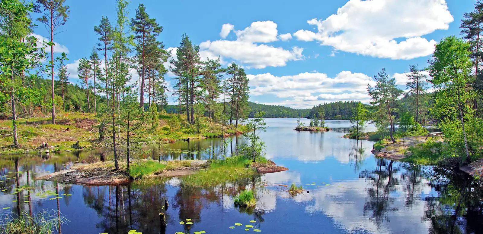 Nachdem wir den Blick über die endlose Weite Schwedens mit seinen unzähligen Seen, sanften Bergen und majestätischen Wäldern schweifen lassen, geht es direkt vom Hotel aus auf dem Nordvärmlandsleden durch Moorgebiete und wilde Wälder zum Äcktjärn. Nach einer kleinen Pause wandern wir auf einem abenteuerlichen Pfad weiter zu einer Anglerhütte am wunderschön gelegenen Spraggtjärn. Hier können wir ein erstes Bad im Moorsee nehmen. Nachdem wir uns gestärkt haben, wandern wir zurück zum Hotel (GZ: 4 1/2 Std., +/- 250 m).