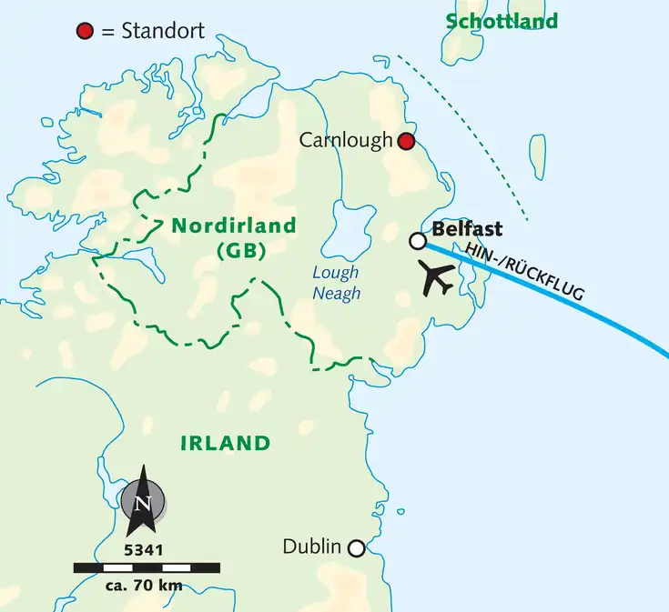 Flug nach Belfast und Transfer zu unserem Hotel.