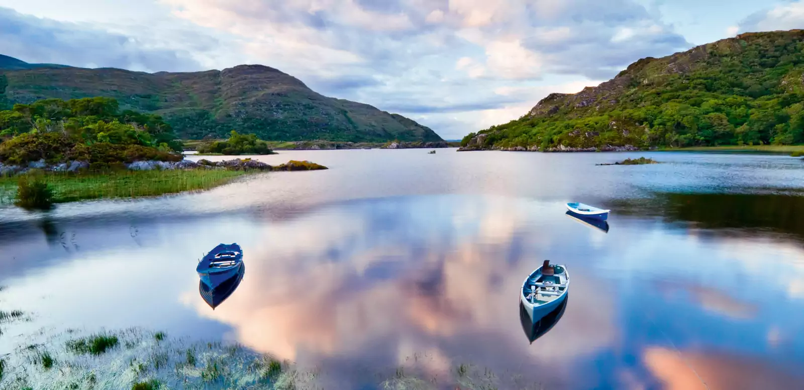 Nach einer schönen, längeren Bootsfahrt über den Upper Lake und schmale Wasserarme führt unsere Wanderung vom Brandons Cottage über den schönsten Abschnitt des Weitwanderweges „Kerry Way”. Wir verlassen den Pfad nur kurz, um die tolle Aussicht vom Torc (535 m) zu genießen (GZ: 5 1/2 Std., +/- 500 m, 2 Stiefel).