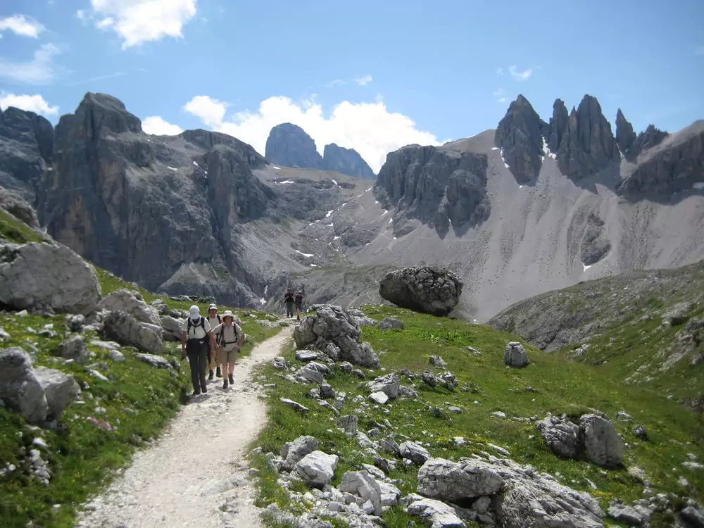 Die Tour ist eine der klassischen Wanderungen in den italienischen Dolomiten. Die Sextener Dolomiten mit den berühmten Drei Zinnen sind die prächtige Kulisse unserer anspruchsvollen Wanderung durch das Fischleintal bis zur Dreizinnenhütte. Nach den steilen Serpentinen werden wir mit einem grandiosen Panorama auf die imposante Bergwelt belohnt. Von dort geht es entlang der Langen Alpe bis zur Auronzo Hütte. Rücktransfer zum Hotel (GZ: 5 1/2 Std., + 950 m, - 230 m).
