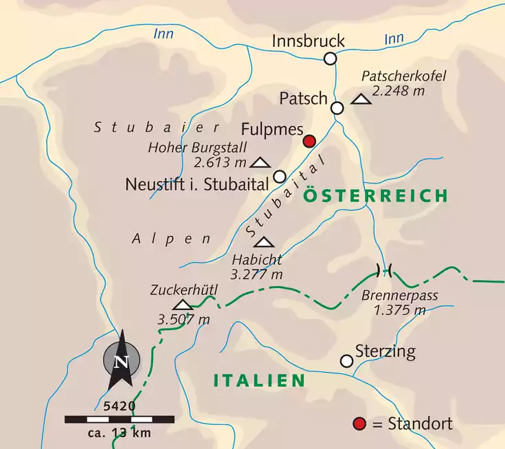 Alles, was man gemeinhin mit der Landschaft und Bergwelt Tirols verbindet und das Herz so sehr begehrt, findet man in dem steil eingeschnittenen Tal des Ruetzbaches südlich von Innsbruck. Idyllische Wälder und Wiesen im weit ausladenden Talgrund, sanfte Anhöhen und sonnige Almen unter den Dreitausendern, rauschende Wasserfälle und klare Bergseen – lass dich einladen in diese blühende Bilderbuchlandschaft und in die Behaglichkeit einer guten „Stube”, woran der für diese Gegend überlieferte Name „Stubeia” erinnert.