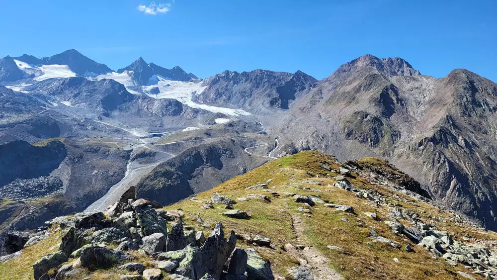 Mit der Seilbahn geht es vom Tal aus in zwei Etappen hinauf zum „Top of Tyrol“ – der spektakulären Aussichtsplattform auf 3.200 m mit Rundumblick bis zu den Dolomiten. Nach dem Höhenpanorama beginnt unsere Wanderung an der Mittelstation beim Eisgrat: ein abwechslungsreicher Rundweg führt über einen felsigen Steig zum kleinen Wildsee und weiter zum Egesengrat (2.631 m), wo uns ein grandioser Ausblick erwartet. Auf dem Rückweg wandern wir durch alpine Landschaft, queren kleine Bäche und kehren schließlich an der Dresdner Hütte ein. Danach Talfahrt per Seilbahn (GZ: 3 1/2 Std., +/- 350 m).