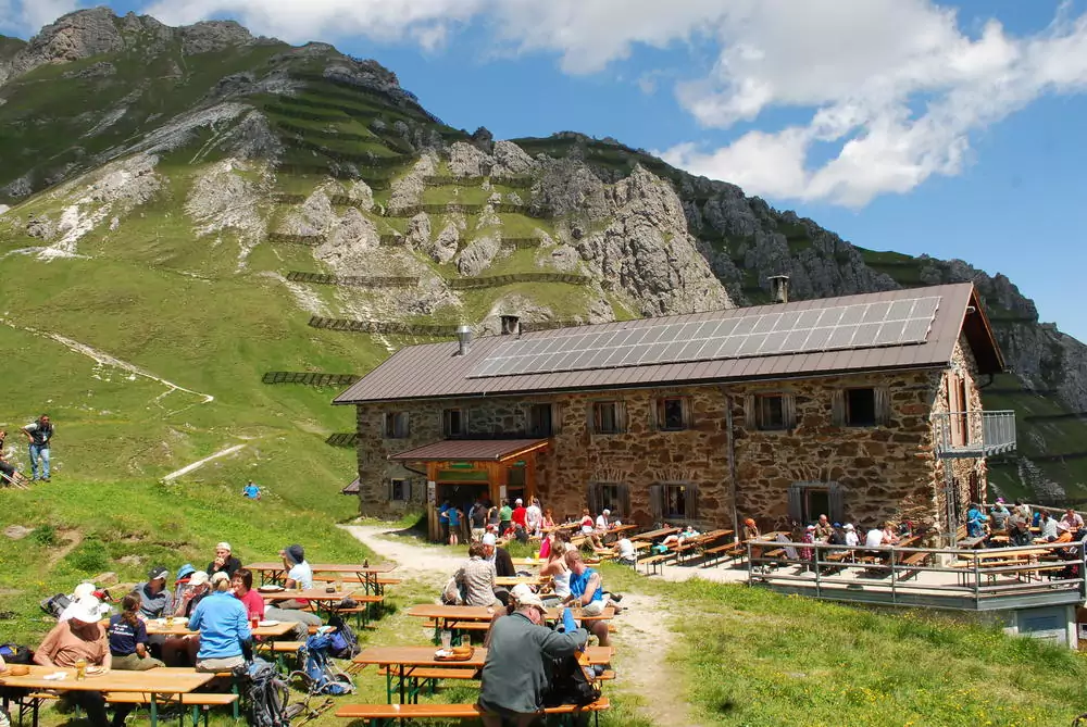 Mit der Kreuzjochbahn geht es bequem hinauf zum Startpunkt dieser aussichtsreichen Tour. Nach einem kurzen Panoramaweg erreichen wir die Sennjochhütte und wandern weiter auf einem schmalen, alpinen Pfad zur traumhaft gelegenen Starkenburger Hütte (2.237 m). Der Weg erfordert Trittsicherheit und Schwindelfreiheit, belohnt aber mit spektakulären Ausblicken. Nach einer wohlverdienten Pause auf der Hütte wählen wir zwischen mehreren Rückwegen: entweder auf derselben Route oder über die malerische Kaserstattalm mit anschließender anspruchsvoller Etappe auf einem schmalen Almsteig zurück zur Bergstation (GZ: 4 1/2 Std., +/- 700 m).