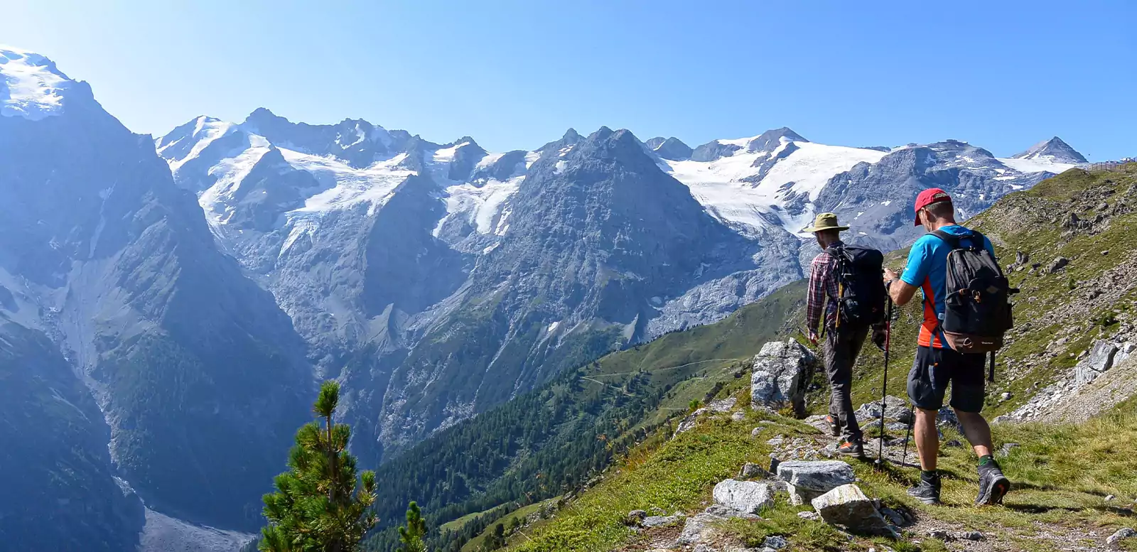 Flugs aus den Federn, denn die Nauderer Bergwelt wartet! Wir fahren mit der Bahn zum Bergkastell (2.173 m) und wandern auf dem Nauderer Höhenweg im leichten Auf und Ab zurück nach Nauders. Auf dem Weg zum Ortler (1 Ü in Franzenshöhe) halten wir am Reschensee, um uns den aus dem Wasser ragenden Kirchturm anzuschauen (GZ: 6 Std., + 400 m, - 1.200 m).