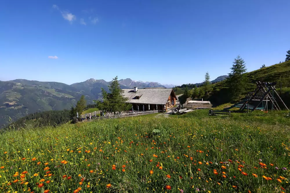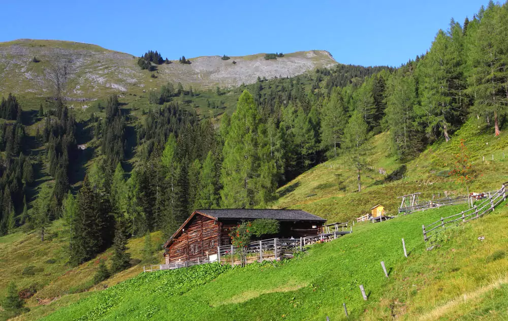 Transfer nach Grundlehen. Mit 1794 m ist die Ellmaualm die höchstgelegene Alm, die wir besuchen. Zu Kaspressknödel gibt es hier Sonnenschein und Tauernblick. Oder wir wandern gleich zur Weißalm weiter, die wie die Karseggalm einige Jahrhunderte alt ist und den Geist der alten Zeiten gut eingefangen hat. Beim schönsten Almambiente genießen wir die hausgemachten Spezialitäten und steigen anschließend an der Loosbühealm vorbei zum Parkplatz ab. Rücktransfer zum Hotel (GZ: 3 1/2 Std., +/- 450 m).