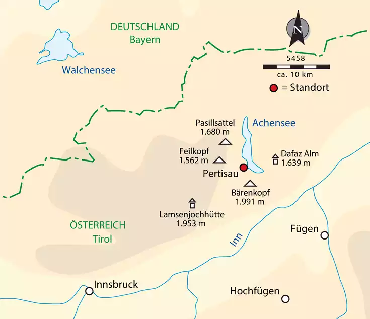 Nachdem wir uns in Pertisau umgesehen haben, machen wir uns auf den Weg ins Falzthurntal. Gleich am Taleingang nehmen wir den Pfad zum Feilkopf (1.562 m) und genießen von seinem Gipfel einen schönen Ausblick über Pertisau und den Achensee. Auf dem Rückweg kehren wir auf der Feilalm ein; das grandiose Karwendel-Panorama ist bei der Einkehr inklusive (GZ: 4 Std., +/- 600 m).