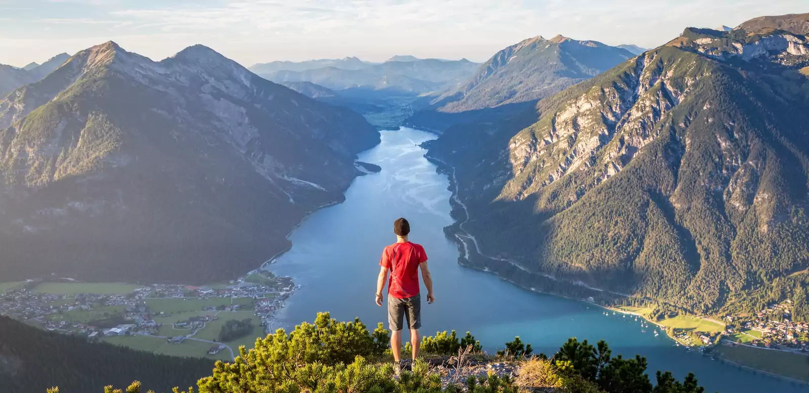 Wie ein Fjord schiebt sich die tiefblaue Schleife des Achensees zwischen die Berge. Rechts das Rofan, links das Karwendel und wir suchen uns die besten Wanderungen heraus: Ob zur Dalfaz Alm mit grandiosem Karwendel-Panorama oder zum Bärenkopf mit herrlichem Seeblick. Wer gerne von Alm zu Alm wandert und auf Aussichtsgipfel steigt, kommt voll auf seine Kosten. Für die freie Zeit lockt in Pertisau, wohl die schönste Stadt am Ufer des „Tiroler Meeres“, das kühle Nass nicht nur Badegäste und Sonnenanbeter an, sondern auch uns. Erlebe es selbst!