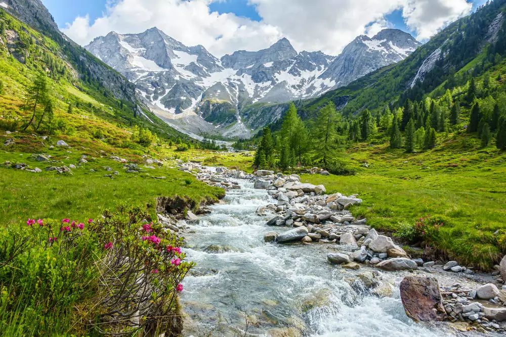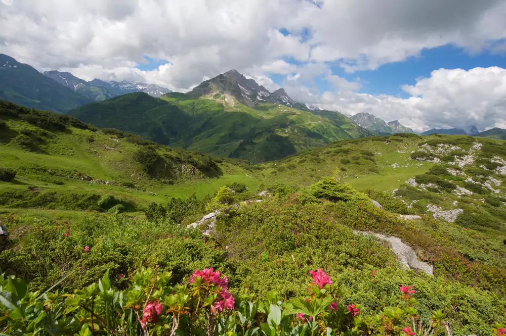 Busfahrt nach Mittelberg. Wir beginnen unsere Alpenüberquerung mit einer Wanderung durch das herrliche Gemsteltal, das für seine Ursprünglichkeit und alpine Bilderbuchlandschaft bekannt ist. Ab der Hinteren Gemstelhütte sind wir so gut wie allein unterwegs: Der Weg windet sich durch eine enge Klamm, ist aber gut begehbar. Nun steigen wir zum Koblatpass auf und genießen schöne Ausblicke auf den Großen Widderstein und das Geißhorn. Mit dem einsamen Haldenwanger Eck erreichen wir den südlichsten Punkt Deutschlands. Danach Abstieg ins Lechtal (1 Ü; GZ: 4 1/2 Std., + 900 m, - 700 m).