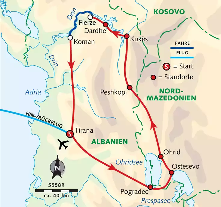Die Gebirgswelt Albaniens und Nordmazedoniens verzaubert mit grandiosen Aussichten auf schneebedeckte Gipfel und weite Täler. Dank unserer E-Bikes genießen wir das Panorama ohne große Anstrengung. Wir radeln zu zwei der ältesten Seen Europas, dem Ohridsee und dem Prespasee im Dreiländereck von Nordmazedonien, Albanien und Griechenland. Bei einer Schiffsfahrt auf dem Fierza-Stausee bewundern wir die fjordähnliche Landschaft. Komm mit und überzeuge dich selbst von der beeindruckenden Kulisse!