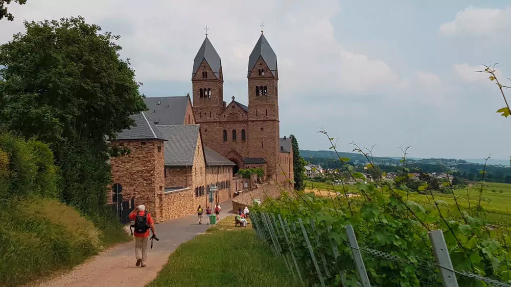 Mehrere Höhepunkte warten heute auf uns. Zunächst „erklimmen“ wir vom Rotweinstädtchen Assmannshausen aus mit dem Sessellift den höchsten Punkt dieses Tages. Hier erhebt sich stolz und weithin sichtbar das Niederwalddenkmal. Danach geht es gemütlich auf einem Panoramaweg bis zur Abtei St. Hildegard. Nachmittags erreichen wir dann Rüdesheim mit seinen vielen Weingasthäusern und Gartenschänken (GZ: ca. 3 Std., + 150 m, - 300 m). Hier besuchen wir die RheinWeinWelt und probieren uns durch ein paar leckere (auch alkoholfreie) Tropfen.